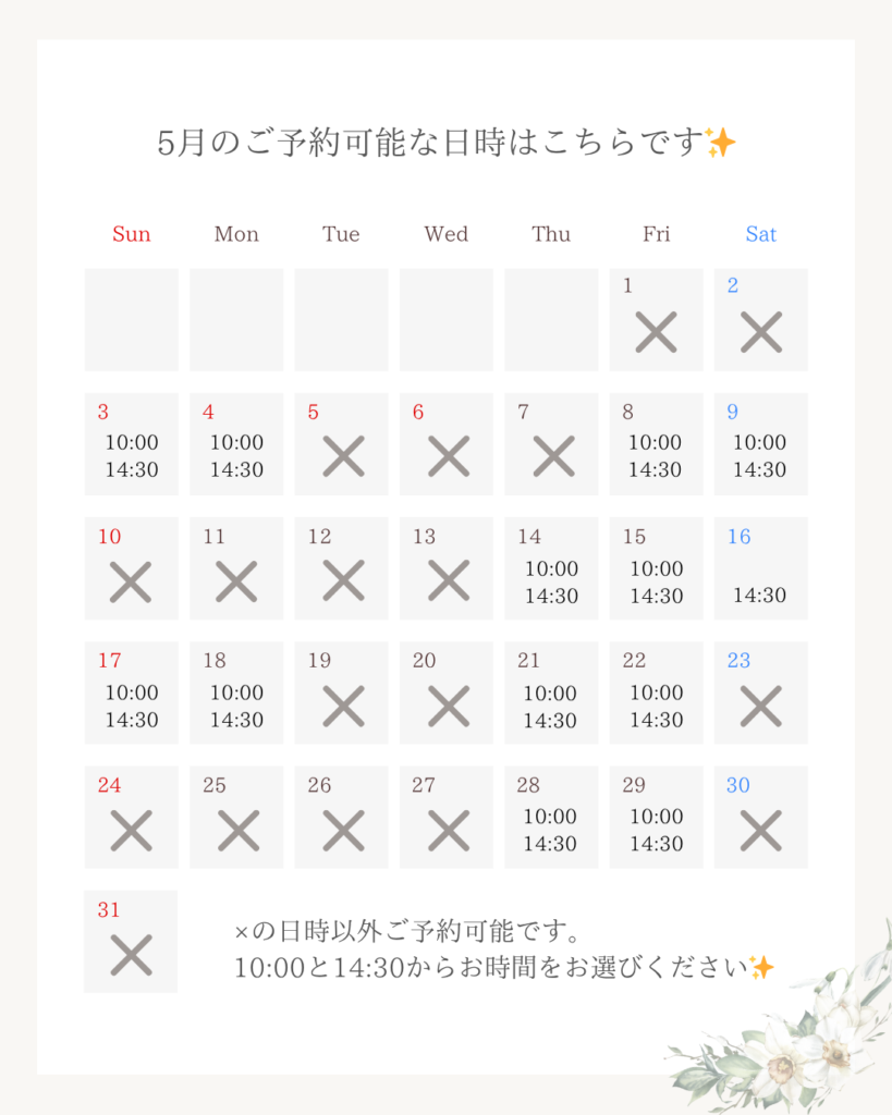 予約可能日が決まりました♡